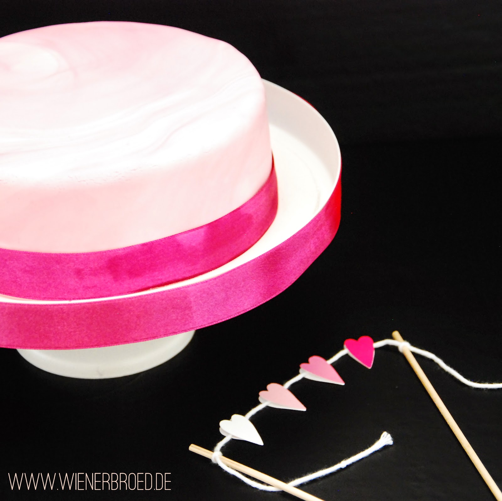 250g Rollfondant (weiß oder farbig, ich habe rosa und weiß gemischt und damit ein marmoriertes Fondant bekommen)