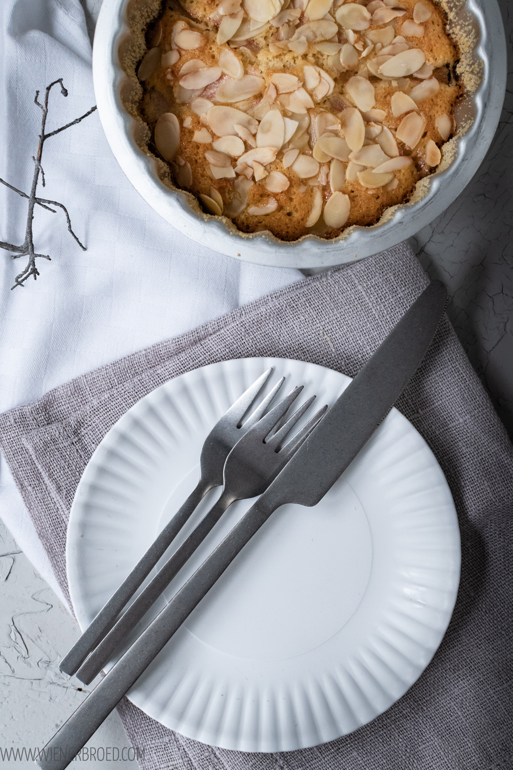 Rhabarber-Mandelkuchen, schnelles Rezept für herrlich saftigem schwedischen Mandelkaka mit Rhabarber / Rhubarb almond cake, quick recipe for juicy Swedish Mandelkaka with rhubarb [wienerbroed.com]